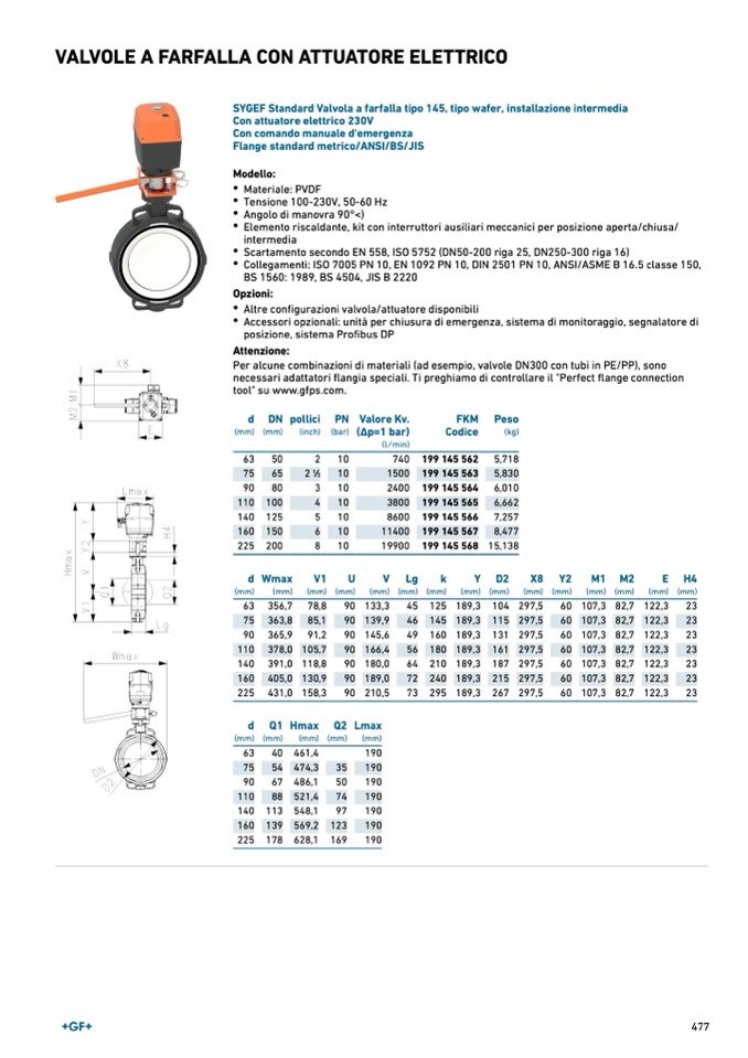 SYGEF Standard Valvola a farfalla tipo 145, tipo wafer, installazione intermedia