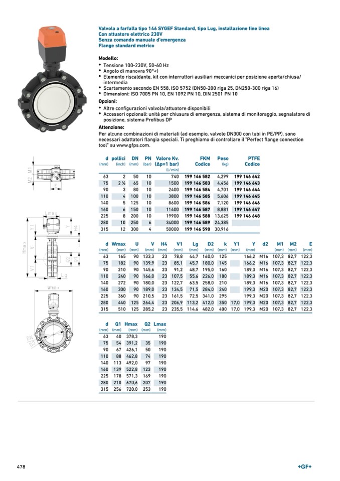 Valvola a farfalla tipo 146 SYGEF Standard, tipo Lug, installazione fine linea