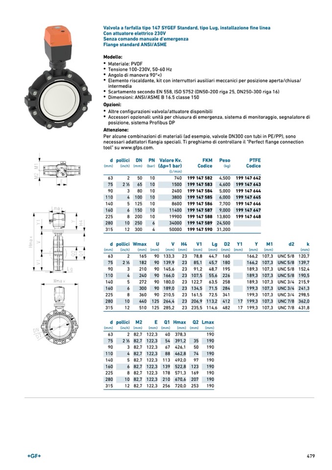 Valvola a farfalla tipo 147 SYGEF Standard, tipo Lug, installazione fine linea
