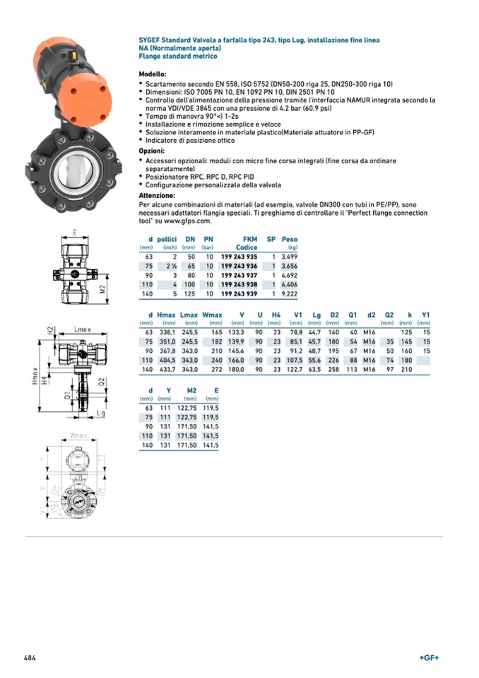 SYGEF Standard Valvola a farfalla tipo 243, tipo Lug, installazione fine linea