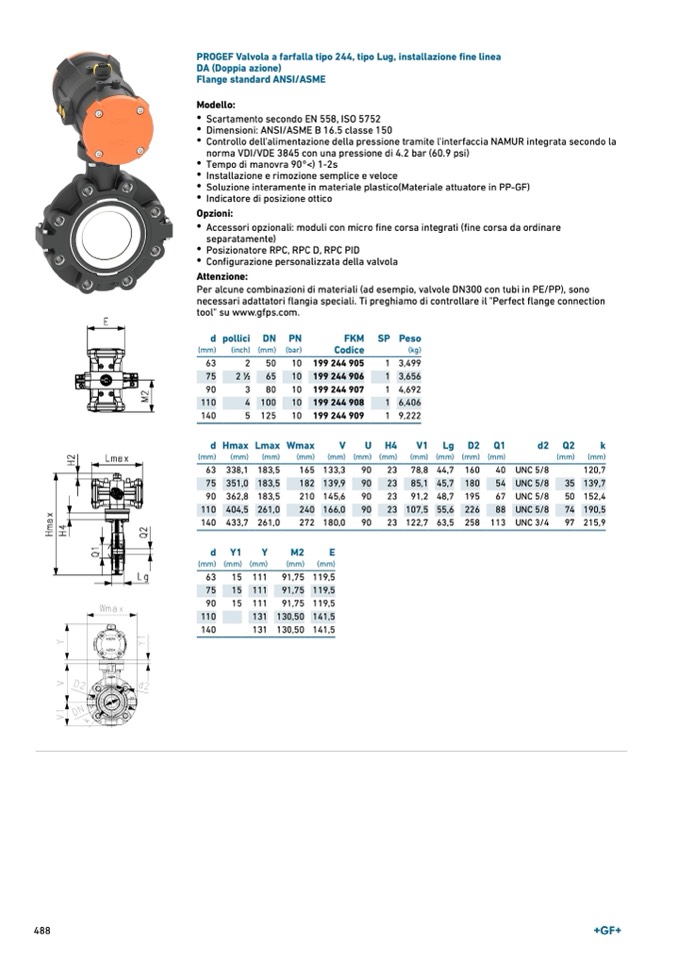 PROGEF Valvola a farfalla tipo 244, tipo Lug, installazione fine linea