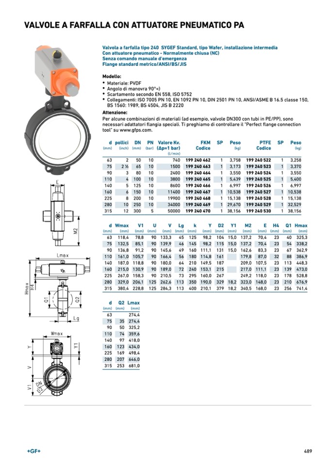 Valvola a farfalla tipo 240 SYGEF Standard, tipo Wafer, installazione intermedia