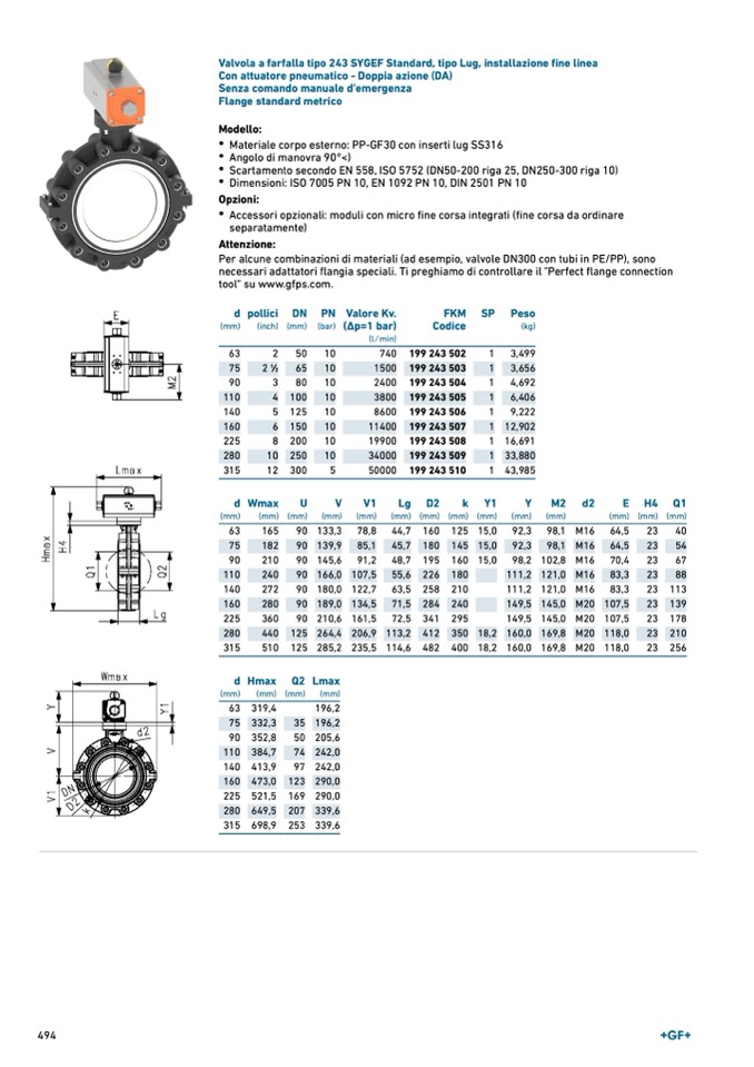 Valvola a farfalla tipo 243 SYGEF Standard, tipo Lug, installazione fine linea
