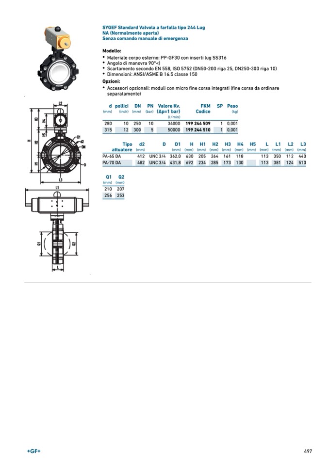 SYGEF Standard Valvola a farfalla tipo 244 Lug