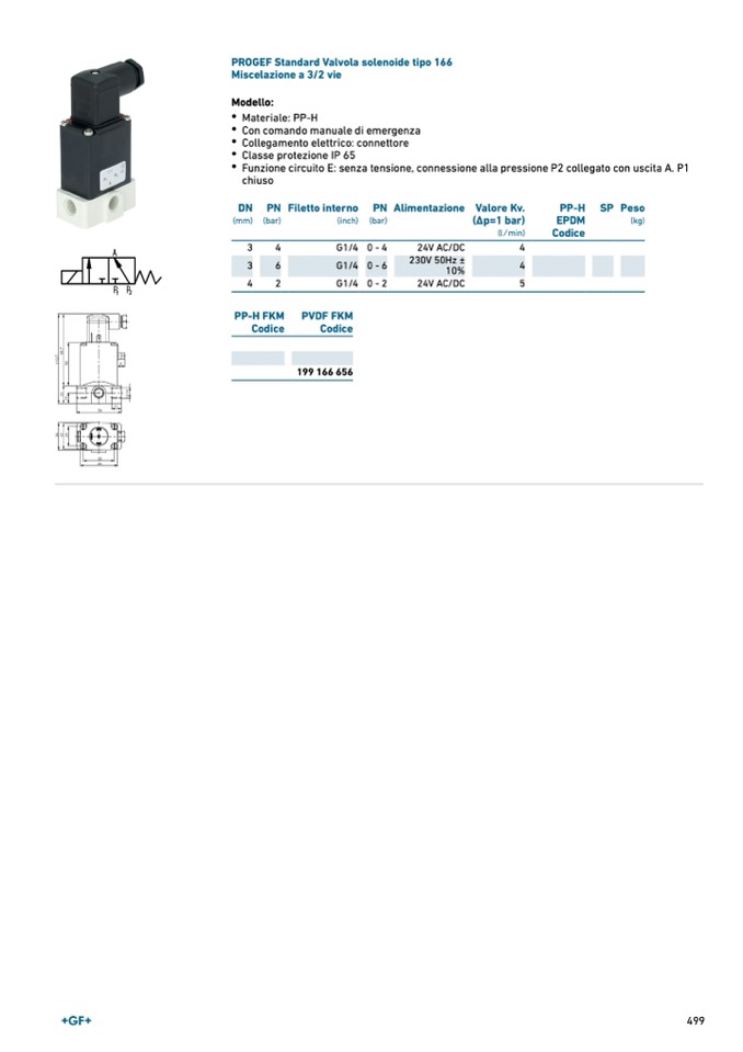 PROGEF Standard Valvola solenoide tipo 166