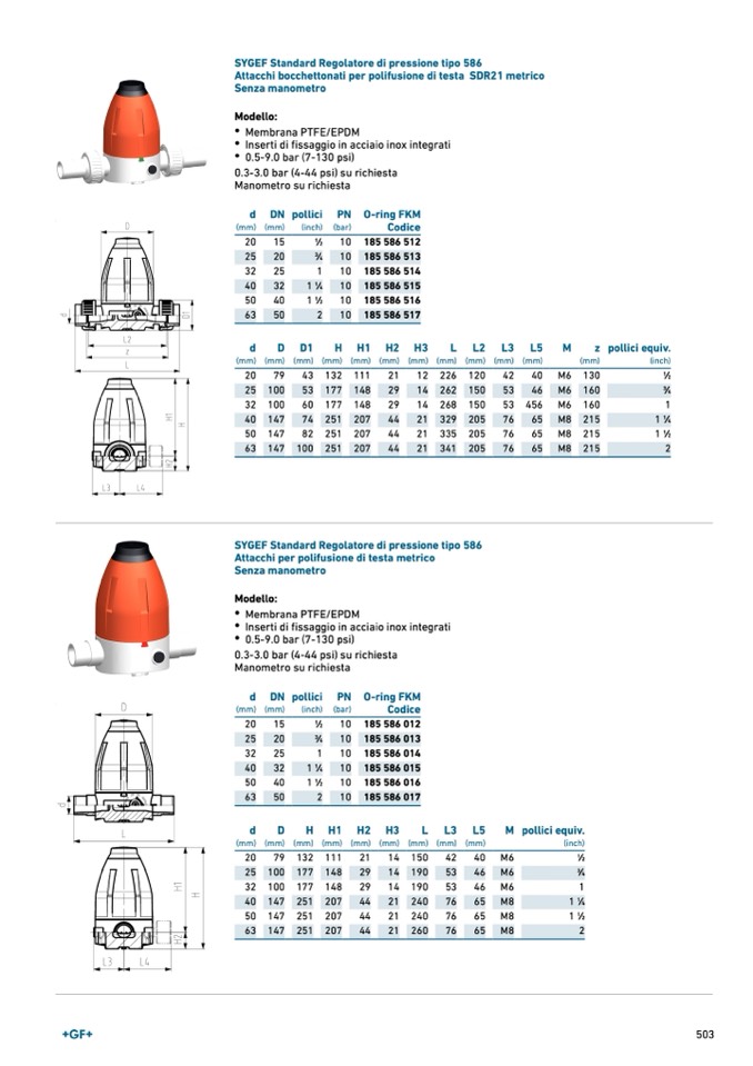 SYGEF Standard Regolatore di pressione tipo 586