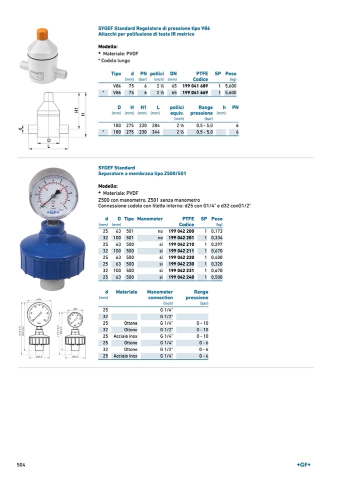 SYGEF Standard Regolatore di pressione tipo V86