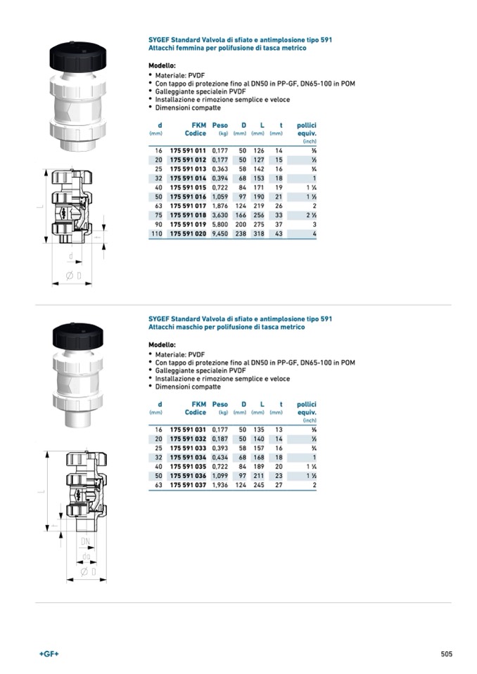 SYGEF Standard Valvola di sfiato e antimplosione tipo 591