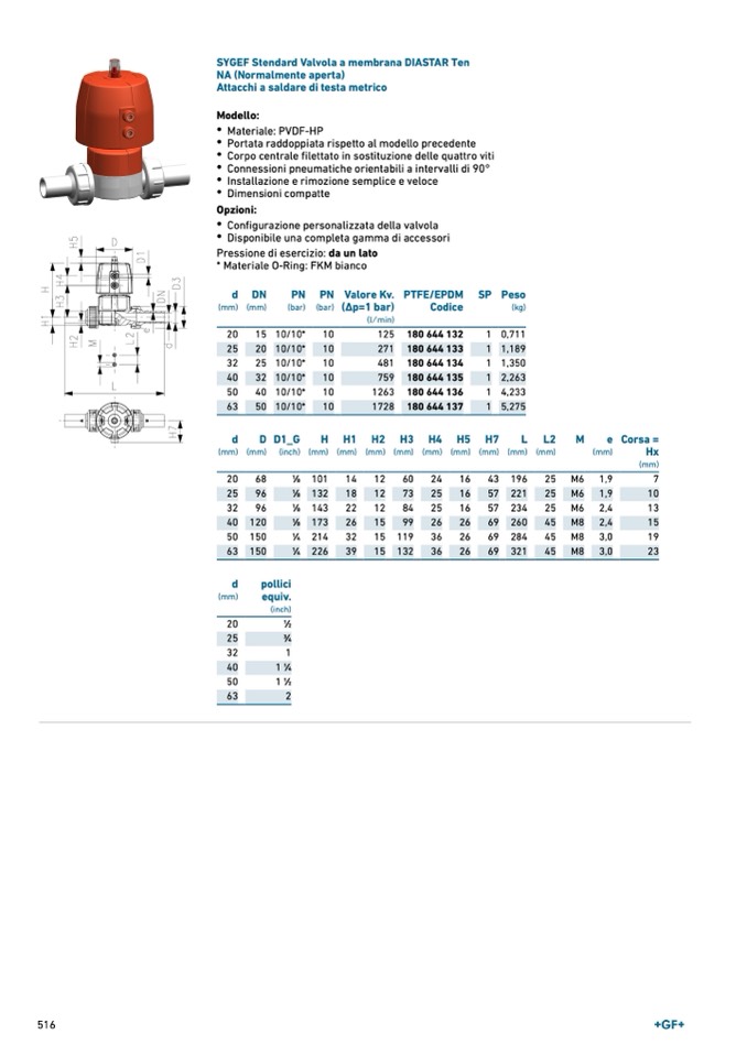 SYGEF Stendard Valvola a membrana DIASTAR Ten