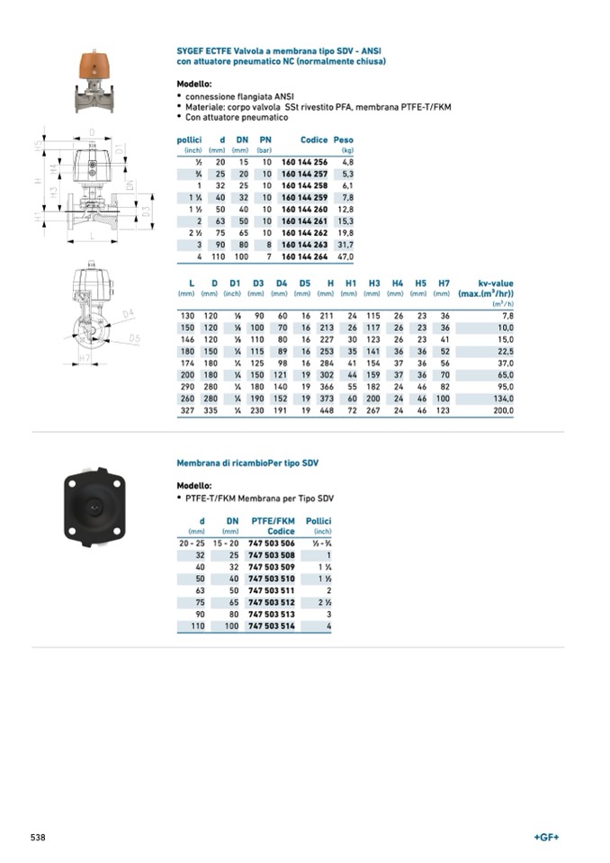 SYGEF ECTFE Valvola a membrana tipo SDV - ANSI