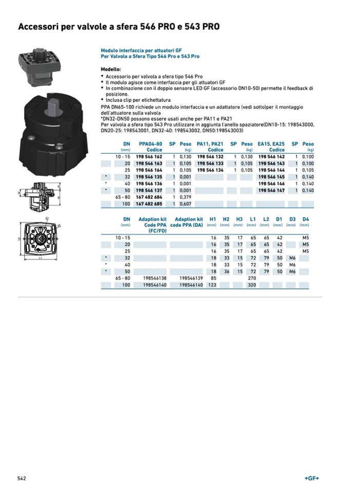 Per Valvola a Sfera Tipo 546 Pro e 543 Pro