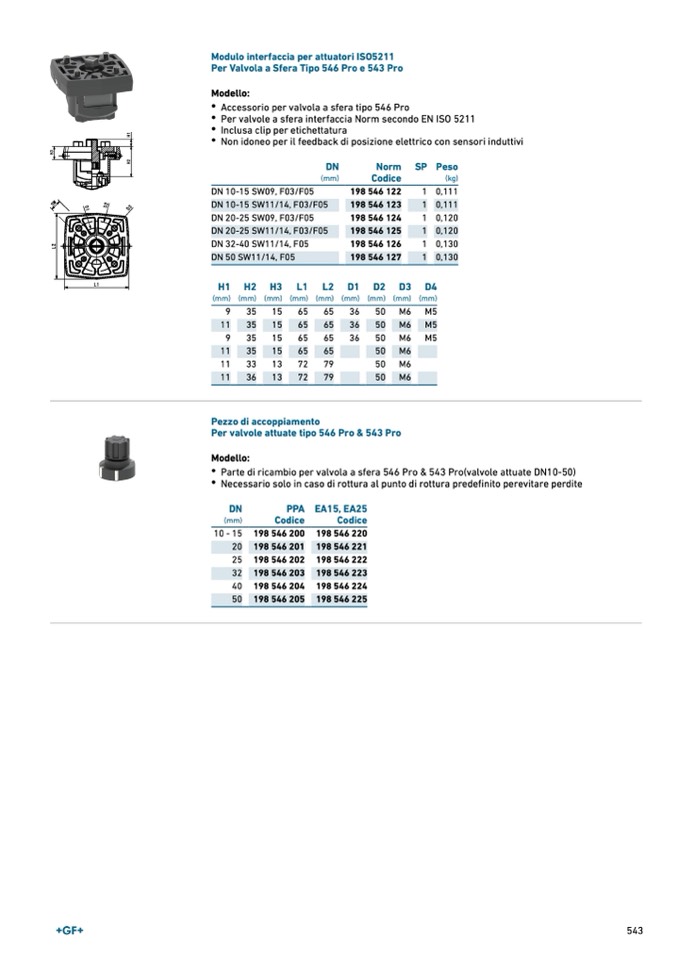 Parte di ricambio per valvola a sfera 546 Pro & 543 Pro(valvole attuate DN10-50)