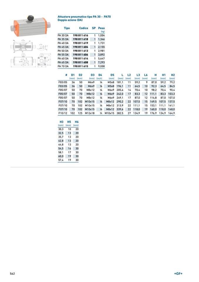 Attuatore pneumatico tipo PA 30 - PA70