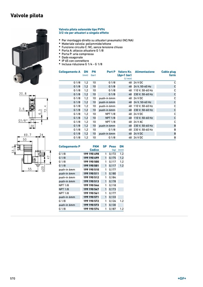 Valvola pilota solenoide tipo PV94