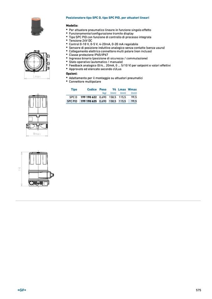 Posizionatore tipo SPC D, tipo SPC PID, per attuatori lineari