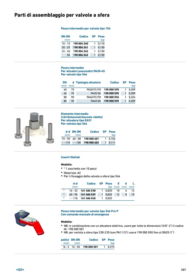 NB: per vavlola a sfera tipo 230-235 (con PA11/21) usare 198 000 500 fino al DN25 (1")