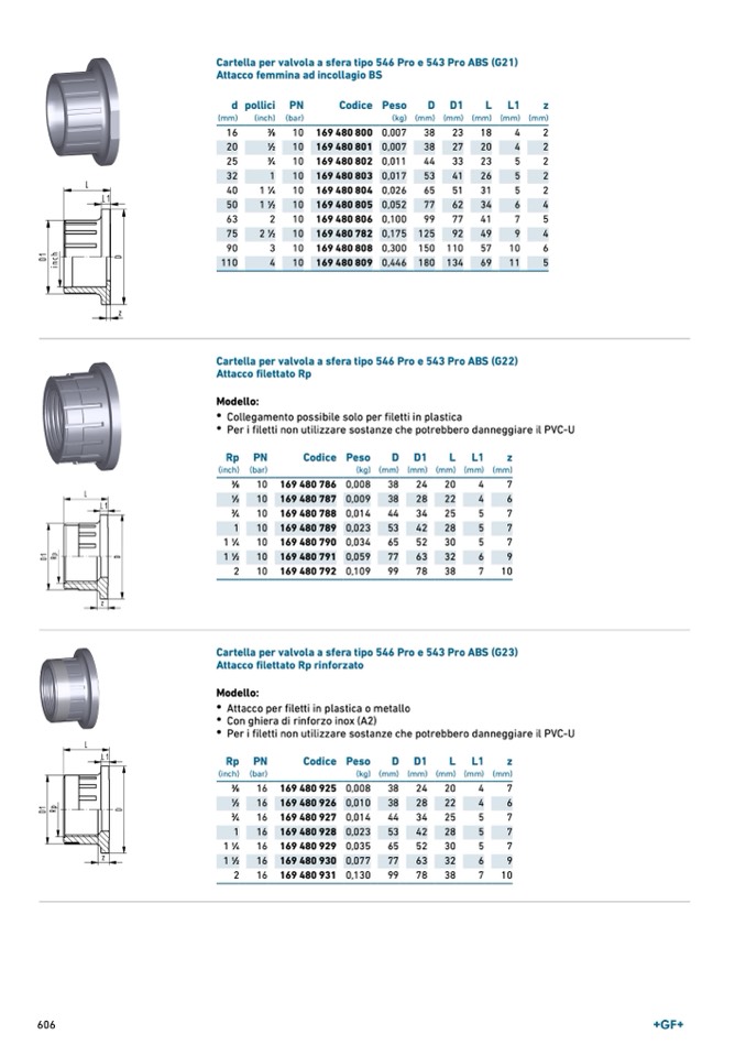 Cartella per valvola a sfera tipo 546 Pro e 543 Pro ABS (G21)