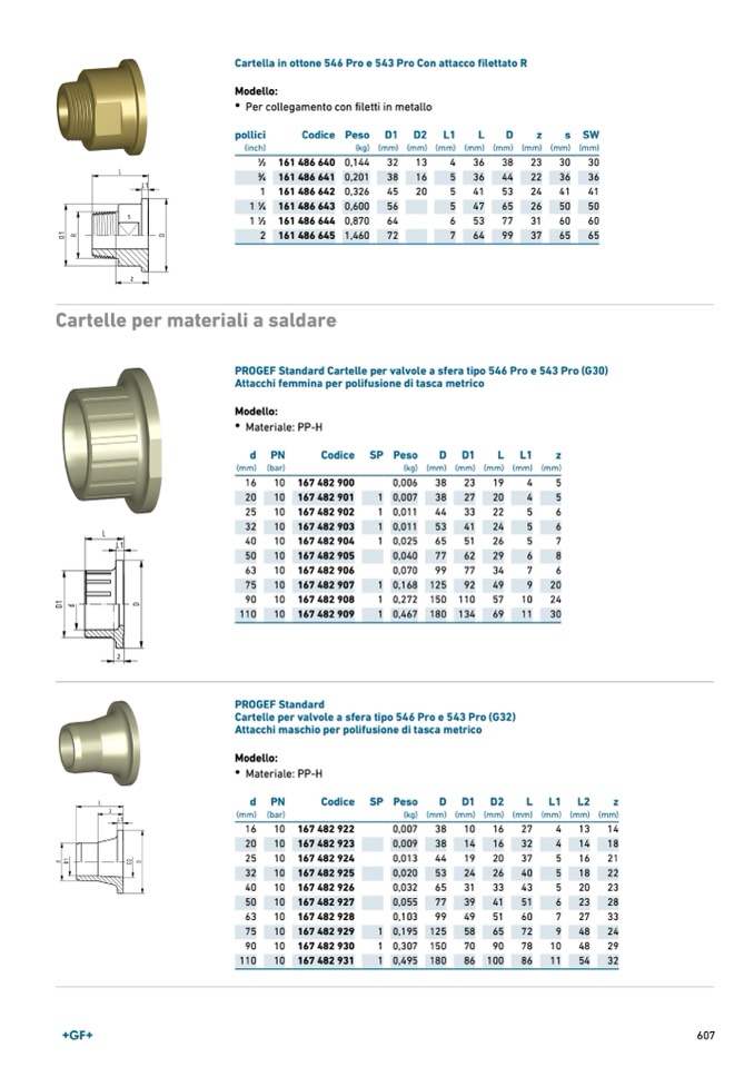 PROGEF Standard Cartelle per valvole a sfera tipo