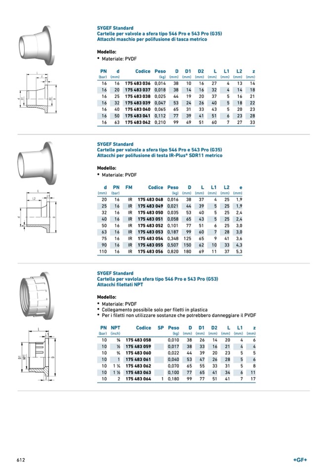 Cartelle per valvole a sfera tipo 546 Pro e 543 Pro (G35)