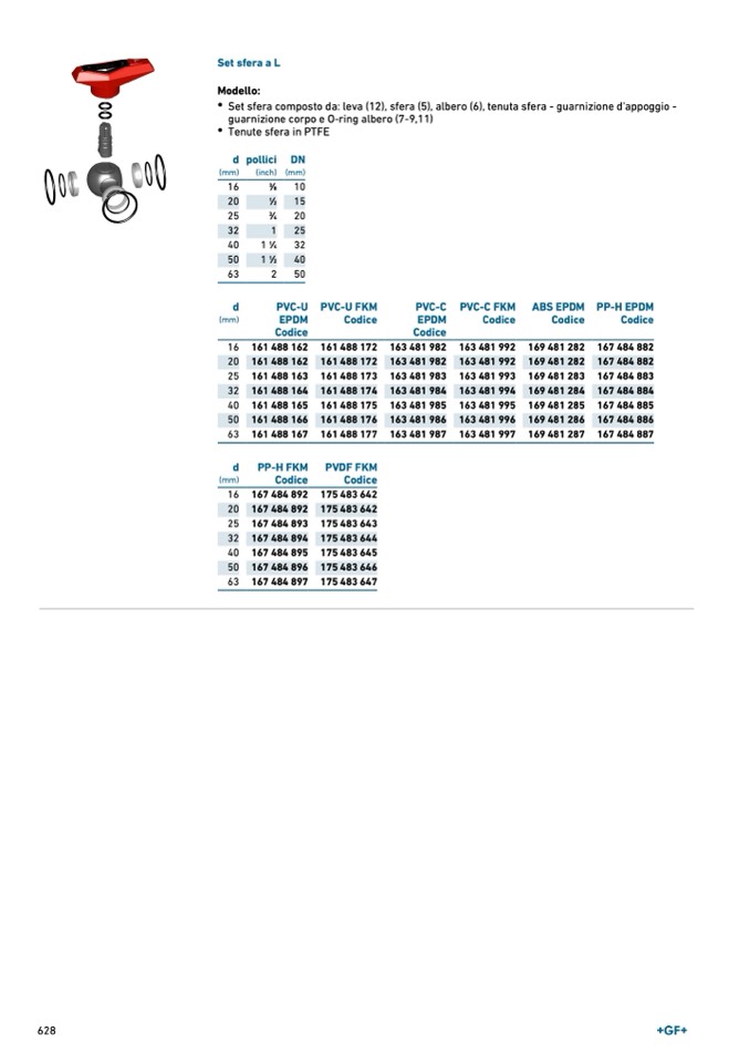 Set sfera composto da: leva (12), sfera (5), albero (6), tenuta sfera - guarnizione d'appoggio -