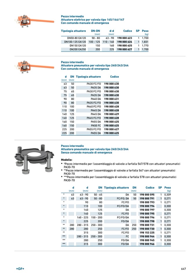 **Pezzo intermedio per l'assemblaggio di valvole a farfalla 567 con attuatori pneumatici