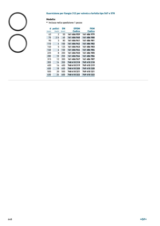 Guarnizione per flangia (12) per valvola a farfalla tipo 567 e 578