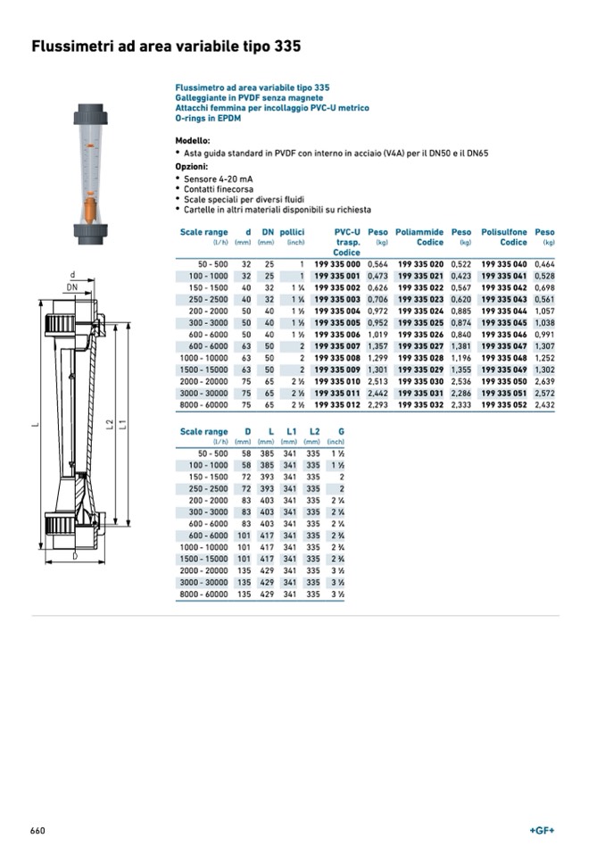 Asta guida standard in PVDF con interno in acciaio (V4A) per il DN50 e il DN65