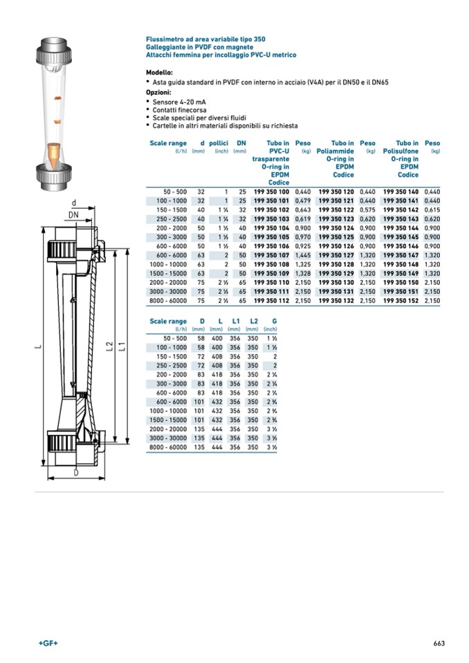Asta guida standard in PVDF con interno in acciaio (V4A) per il DN50 e il DN65