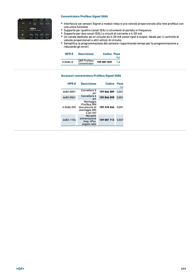 Accessori concentratore Profibus Signet 0486