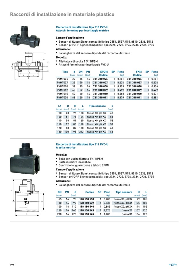 Sensori di flusso Signet compatibili: tipo 2551, 2537, 515, 8510, 2536, 8512