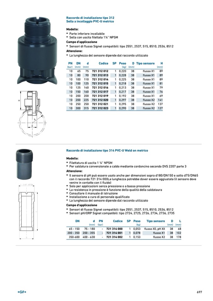 Raccordo di installazione tipo 314 PVC-U Weld on metrico