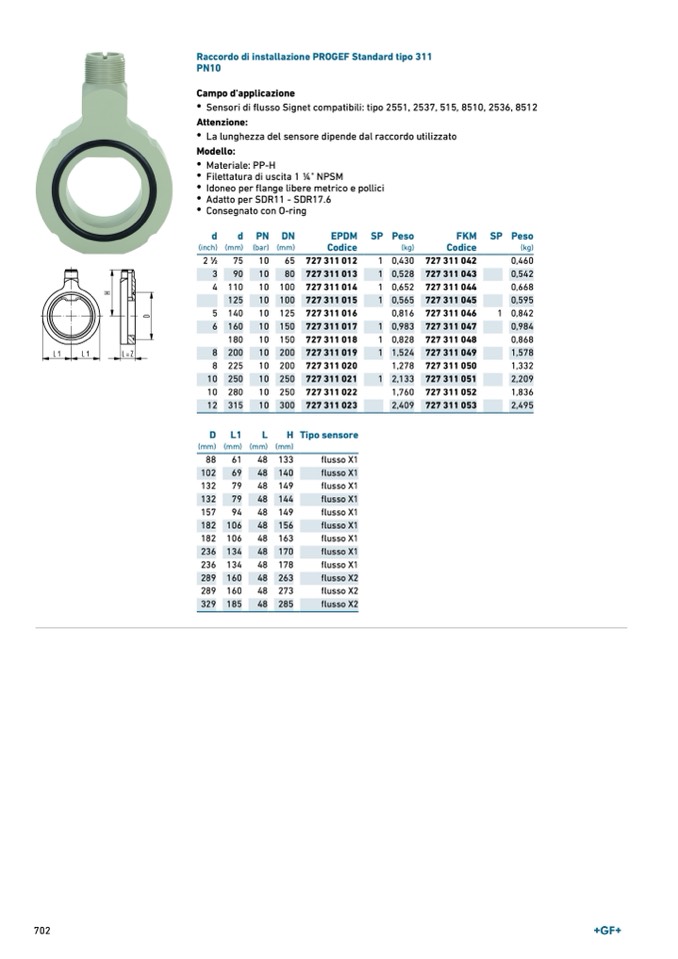 Sensori di flusso Signet compatibili: tipo 2551, 2537, 515, 8510, 2536, 8512