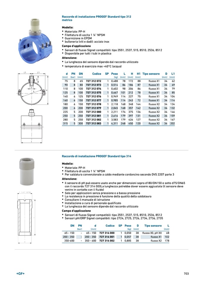 Sensori di flusso Signet compatibili: tipo 2551, 2537, 515, 8510, 2536, 8512