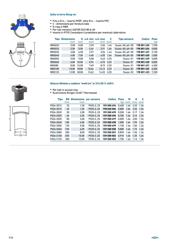 Fino a 8 in. - inserto PVDF, oltre 8 in. - inserto PVC