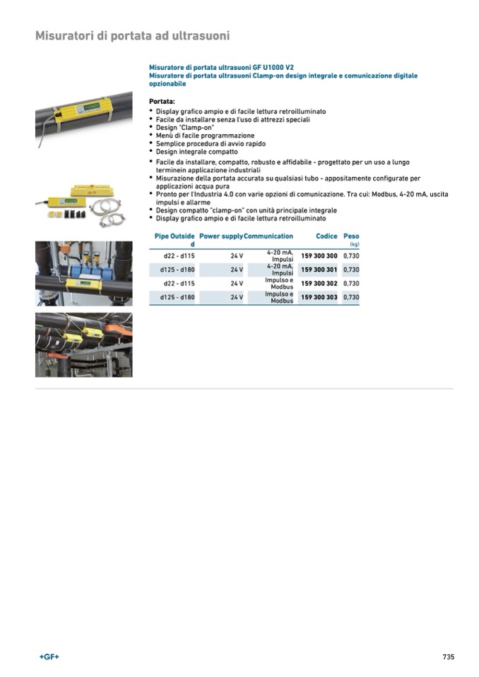Misuratore di portata ultrasuoni Clamp-on design integrale e comunicazione digitale