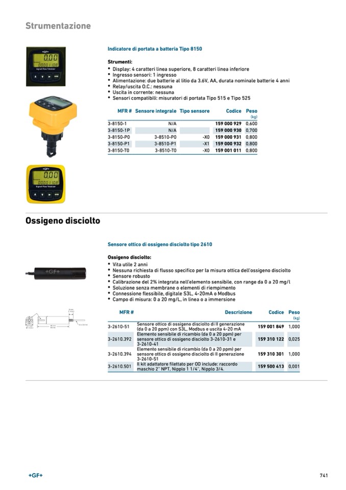Campo di misura: 0 a 20 mg/L, in linea o a immersione