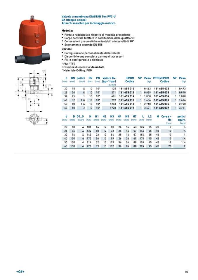 Valvola a membrana DIASTAR Ten PVC-U
