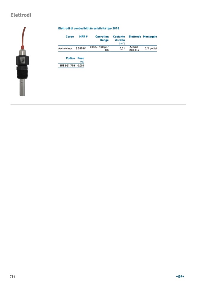 Elettrodi di conducibilità/resistività tipo 2818