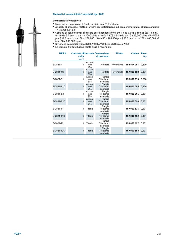 Costanti di cella e campi di misura corrispondenti: 0.01 cm-1 / da 0.055 a 100 μS (da 18.3 mΩ