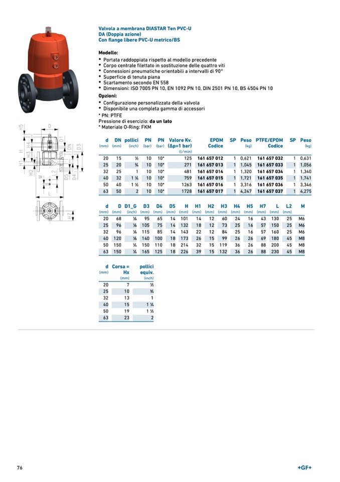 Dimensioni: ISO 7005 PN 10, EN 1092 PN 10, DIN 2501 PN 10, BS 4504 PN 10