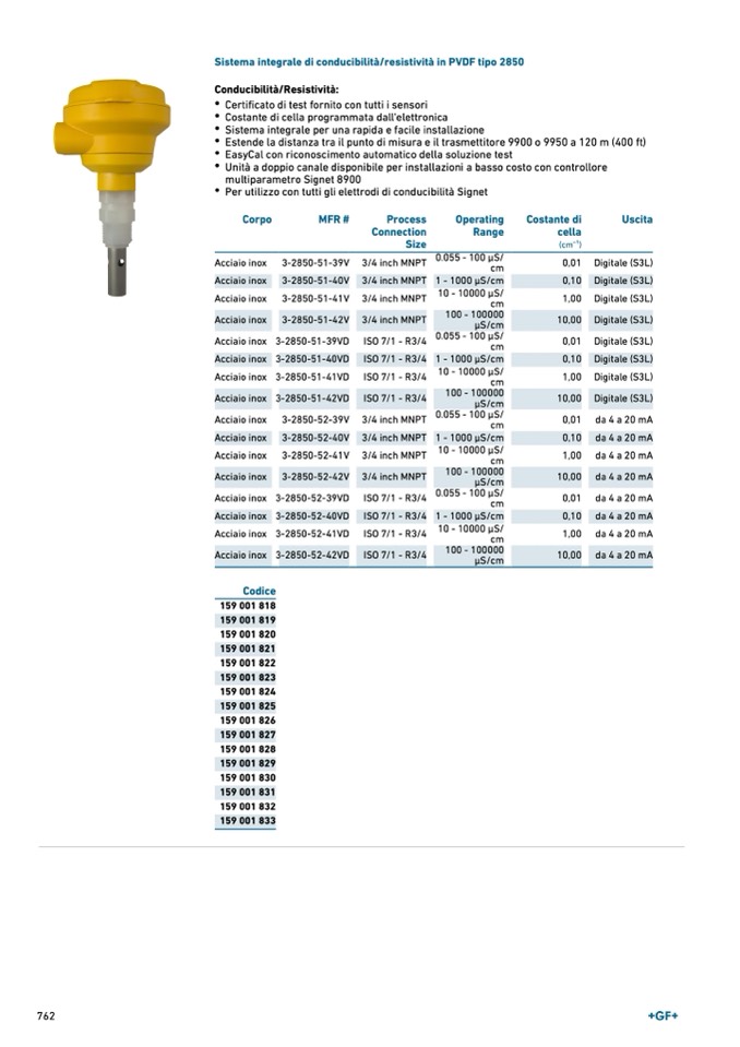 Sistema integrale di conducibilità/resistività in PVDF tipo 2850