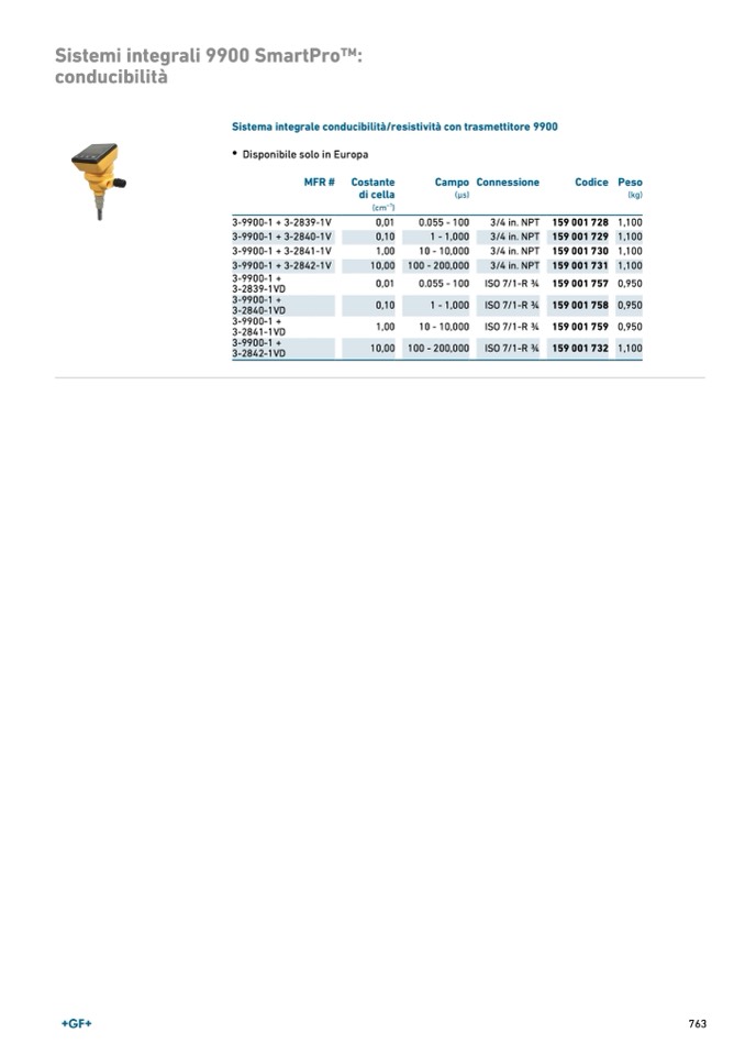 Sistema integrale conducibilità/resistività con trasmettitore 9900