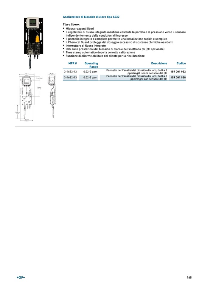 Dati sulle prestazioni del biossido di cloro e dell'elettrodo ph (pH opzionale)