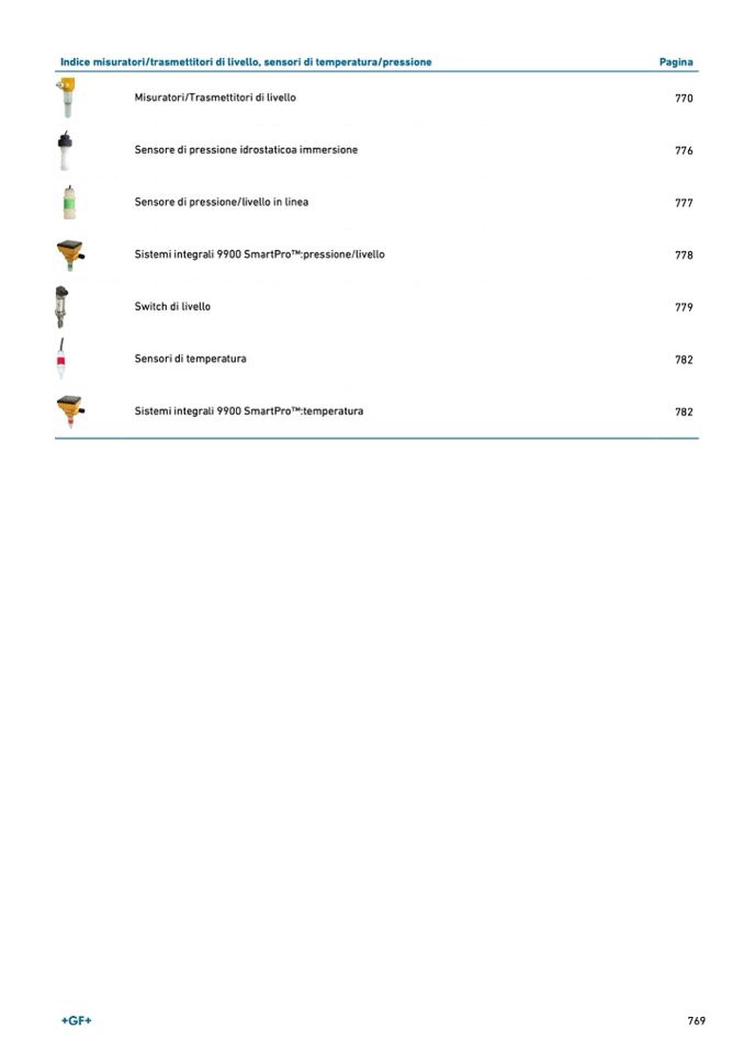 Indice misuratori/trasmettitori di livello, sensori di temperatura/pressione