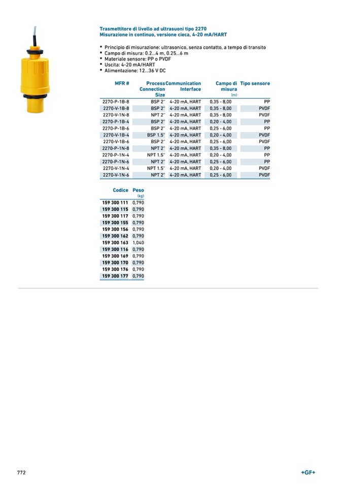 Trasmettitore di livello ad ultrasuoni tipo 2270