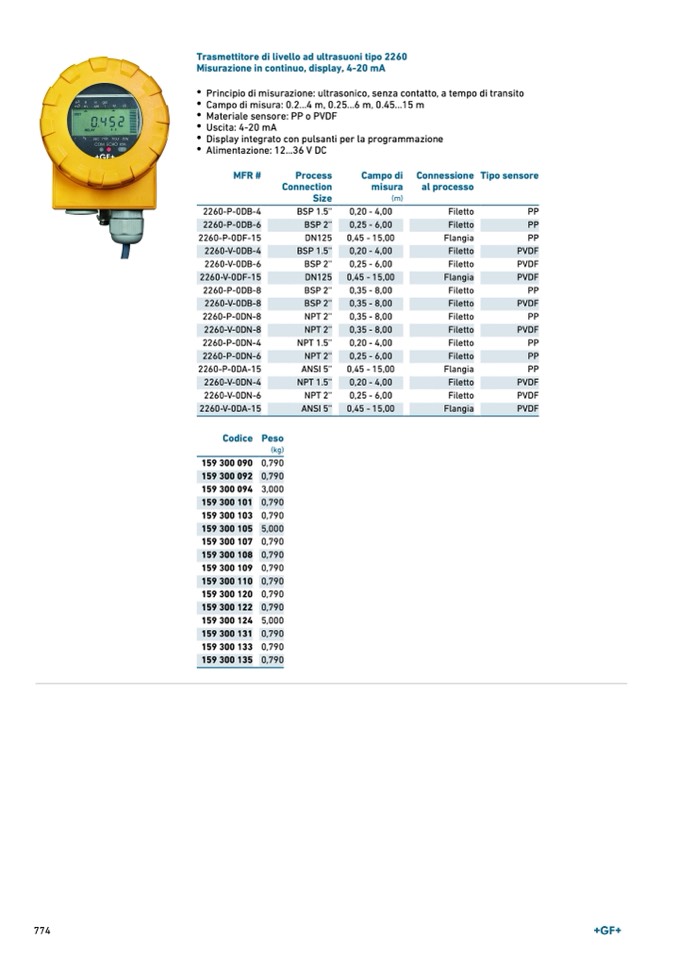 Trasmettitore di livello ad ultrasuoni tipo 2260
