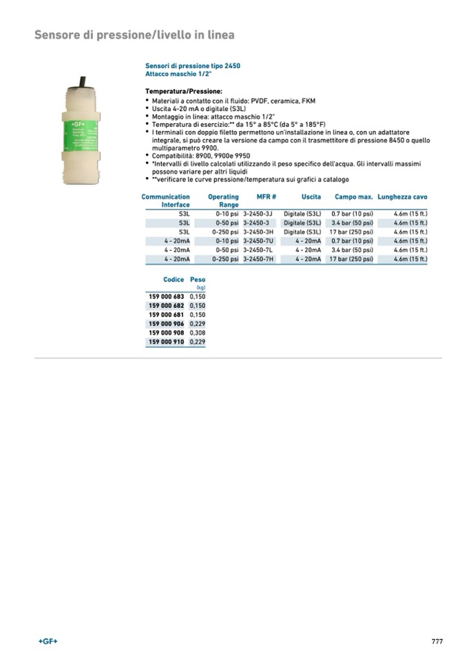 Sensori di pressione tipo 2450