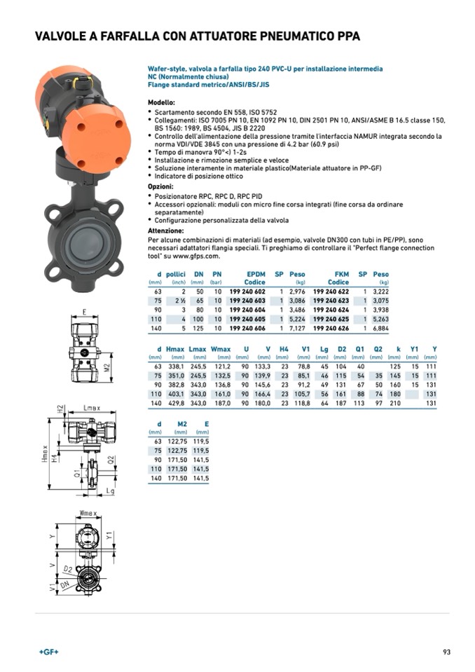 Wafer-style, valvola a farfalla tipo 240 PVC-U per installazione intermedia