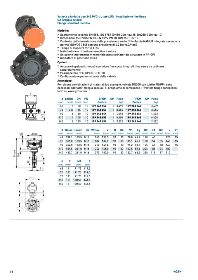 Valvola a farfalla tipo 243 PVC-U , tipo LUG, installazione fine linea