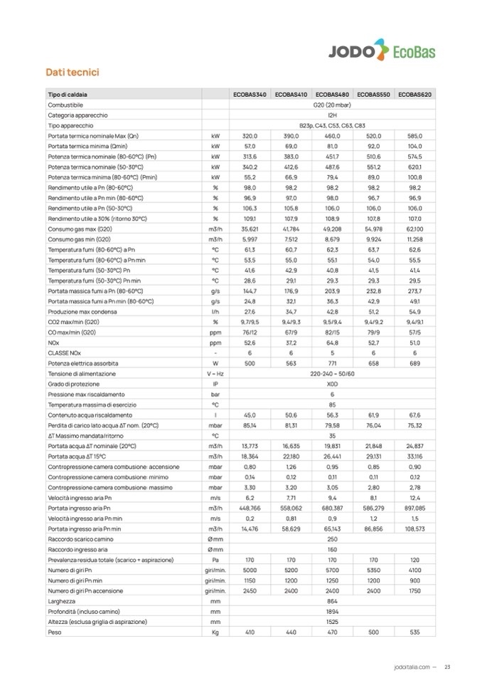 Consumo gas max (G20)